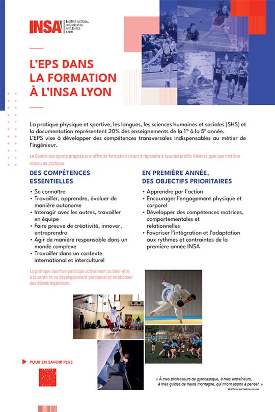 L’éducation physique, sportive et artistique fait partie intégrante de la formation des ingénieurs INSA. En participant à leur développement personnel, elle contribue à former des ingénieurs créatifs, ouverts et novateurs.